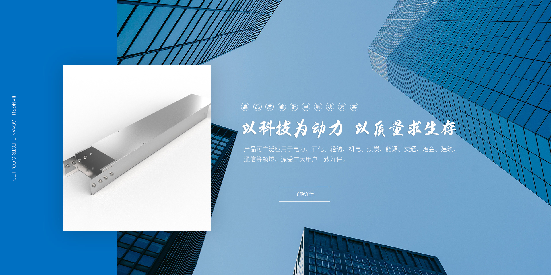 在企业发展过程中不断引进国内外先进技术和设备,制造母线槽、桥架、高低压输配电产品。近几年来“浩彦电气”系列产品覆盖了全国多个省、市、自治区各大工程。